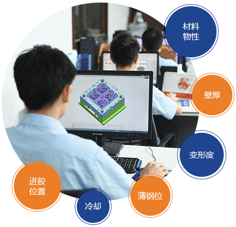 分析通过对材料物性,产品的可行性分析,如壁厚、变形度、进胶位置等,提前预判断潜在问题